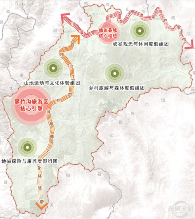 地磁探险与康养度假组团:以黑竹沟为核心,以地磁、温泉、民俗、草甸、森林、雪山等资源为依托,打造集探秘探险、康养度假、文化体验等于一体旅游目的地。